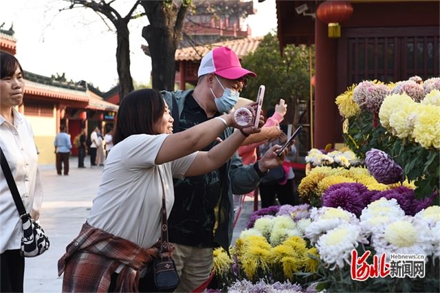 圖為菊花展游客賞菊拍照 黃煒珣/攝