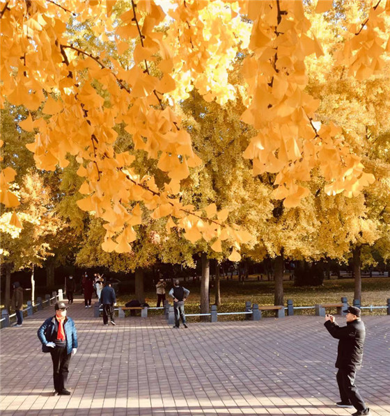 紫荊山公園北門有十幾株銀杏樹,其中幾株樹齡近40年,目前也進(jìn)入最佳觀賞期。