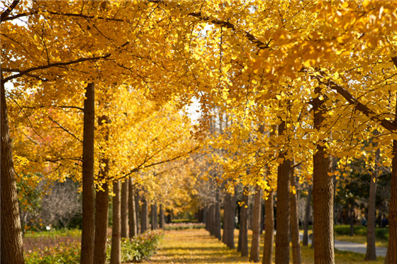鄭州文博廣場是目前鄭州的絕佳銀杏美景勝地。一入園區(qū)便被滿園的金黃震撼,500株銀杏樹不僅粗壯,并且密集列植,交枝搭柯,形成一片金色的海洋,密密匝匝的金葉子美到令人窒息。每年銀杏樹葉飄落之時,會形成一個金色的小走廊,行走其間,如夢如幻,是拍攝藝術(shù)照和情侶休閑的絕佳浪漫之所。