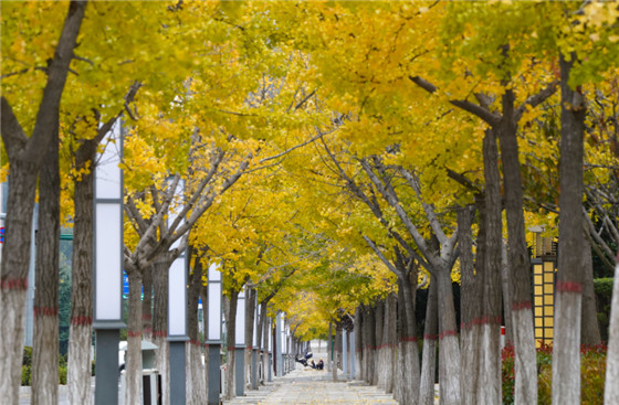 湖西游路及林蔭廣場上,種植有300余株樹齡30年左右的銀杏樹,目前也已是金黃一片。