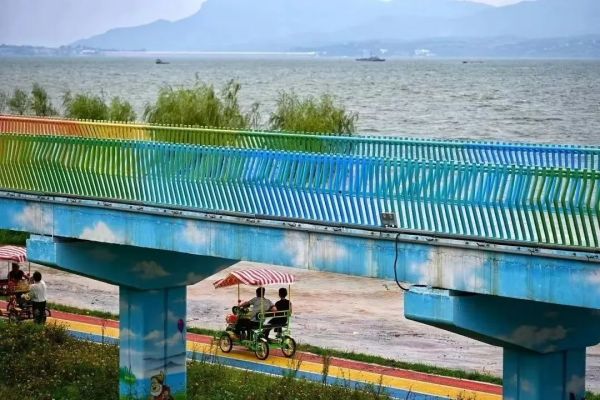 漫步在彩虹步道上,看煙波陸渾,感受山水野趣。在這個(gè)美妙的場(chǎng)景中,就連各種水鳥(niǎo)也忍不住在湖里嬉戲打鬧。
