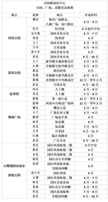 海棠將于本月底下月初開(kāi)放,主要分布于河濱公園海棠園、白鷺洲國(guó)家城市濕地公園海棠林及勞模園西側(cè)海棠花路等。