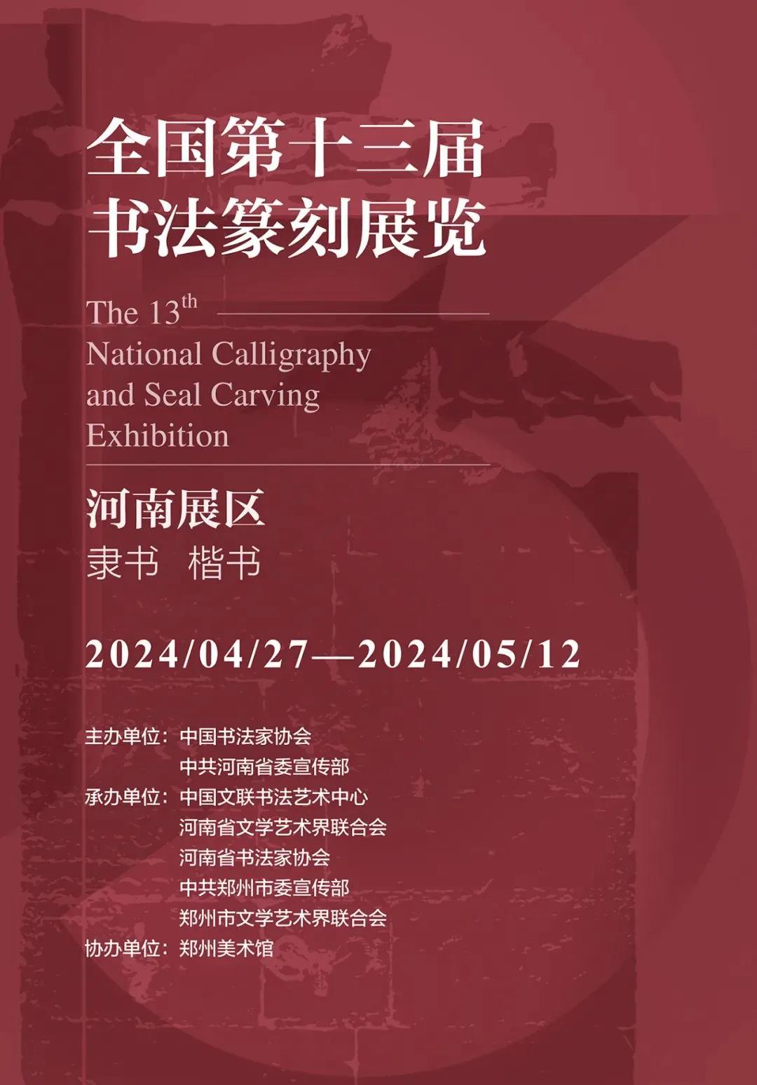 展覽名稱:全國(guó)第十三屆書(shū)法篆刻展覽(河南展區(qū))