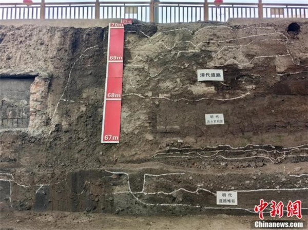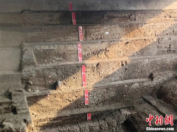 汴河故道探方剖面實證開封“城摞城”。劉鵬 攝