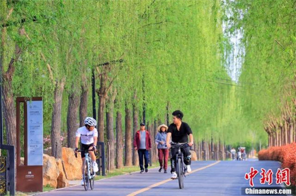 市民在沿黃生態(tài)廊道騎行。李浩 攝