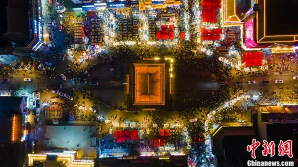 開封鼓樓夜市航拍圖。開封市鼓樓區(qū)委宣傳部供圖
