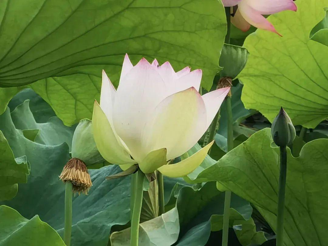 紅白相間、粉白相間的荷花,如同一幅幅精美的水彩畫美不勝收,每一朵荷花都有自己獨特的韻味,競相開放,展示著夏日的美麗。
