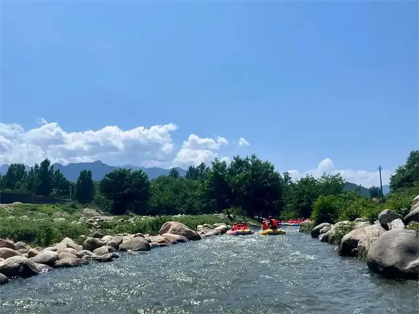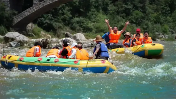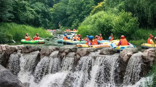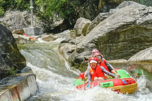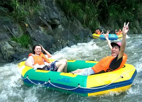 峽谷內(nèi)飛瀑高懸、溪流淙淙、潭幽池清,乘橡皮舟揮槳擊水,穿流于翠嶺幽谷之間,盡享峽谷漂流激情。