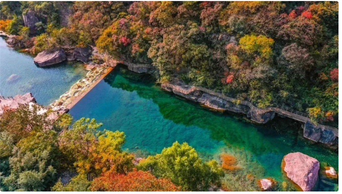 十月中旬秋高氣爽,此刻輕裝出行,趁著人不多,在寶泉坐竹筏游船,與瀑布群合拍,真的隨便一處都很出片!每逢十月中旬,層林盡染。丹崖天路、寶泉之春觀景臺等地為最佳賞景地,紅黃相間,五彩斑斕,此刻寶泉詩意和畫意完美交融。