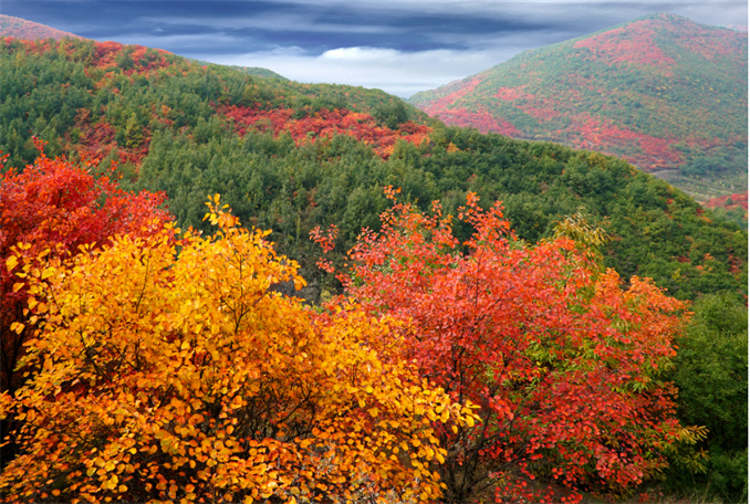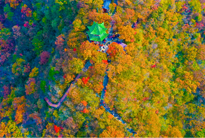 “看萬山紅遍,層林盡染”。位于南太行腹地的萬仙山景區(qū),仿佛“穿”上了五顏六色的“外套”,漫山遍野的紅葉,成為一道壯麗的景觀。由于樹葉變紅的程度不同,呈現(xiàn)出五彩斑斕、層林盡染的景象。