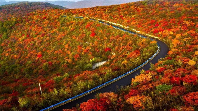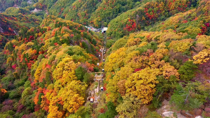 行走在海拔1000多米的太行天路上,臨崖眺望,深邃的峽谷被斑斕的秋色填充,楊樹、黃櫨、五角楓……秋景盡收眼底,吸引著不少游客前來觀賞。