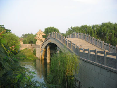 灞陵橋,許昌AAA級(jí)景區(qū),原名八里橋,在許昌市城西4公里的清泥河上,相傳為三國(guó)名將關(guān)羽辭曹挑袍處,灞陵橋從此名揚(yáng)。原橋高于水面3米余,為三孔青石橋。橋面寬能并行兩車,橋長(zhǎng)90米,兩岸楊柳成行,風(fēng)景宜人,橋旁有《漢武帝挑袍處》石碑,為明末將領(lǐng)左良玉所立。另一通碑為辭曹書,保存完好,清代康熙、雍正、乾隆年間,又豎了四通碑,文字清晰,碑文論述關(guān)羽對(duì)曹操辭其金而挑其袍的過程,歌頌他“依曹已久仍歸漢,留得英風(fēng)在潁州”。說他視高官厚祿若糞土,褒他“情深義重垂千秋,士民爭(zhēng)拜漢云長(zhǎng)”。清道光年間傅梓之《許州記》載甄汝舟懷古詩(shī)句,云:“野水四堤浸柳條,道邊殘碣記前朝。長(zhǎng)髯勒馬橫刀處,萬(wàn)古英風(fēng)八里橋。”