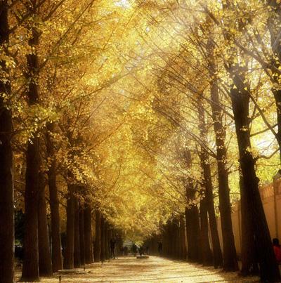 釣魚臺(tái)的銀杏大道是一處聞名北京的美景,個(gè)人認(rèn)為她的壯觀與美麗遠(yuǎn)勝于香山紅葉,深秋季節(jié),金黃的銀杏葉灑落一地,你也許會(huì)感慨,原來落葉也可以用燦爛來形容……
