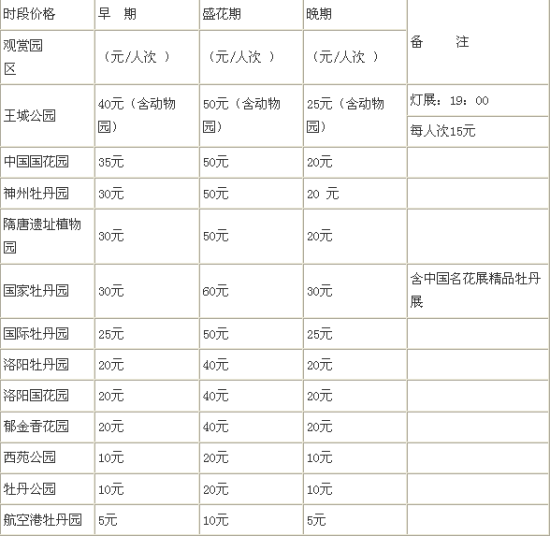 以下為發(fā)改委公布的2012洛陽(yáng)牡丹花會(huì)門票價(jià)格一覽,敬請(qǐng)參考,以便于您的出行旅游。