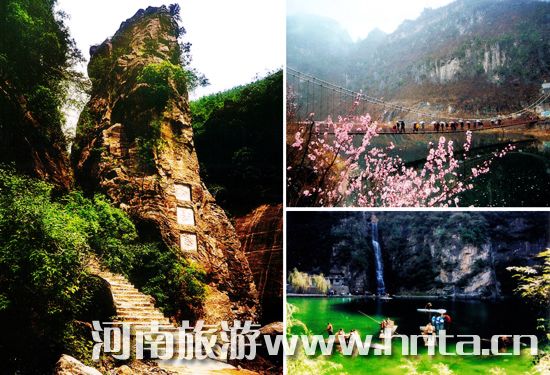 青天河風(fēng)景名勝區(qū)位于河南省焦作市西北部博愛縣境內(nèi),集江南水鄉(xiāng)與北國田園風(fēng)光于一體,被譽(yù)為“北方三峽”、“豫北小桂林”。景區(qū)面積106平方公里,由大壩、大泉湖、三姑泉、西峽、佛耳峽、靳家?guī)X、月山寺等七大游覽區(qū)、308個(gè)景點(diǎn)組成,呈長方形帶狀,是一處集雄、險(xiǎn)、奇、秀、幽于一體,可同時(shí)進(jìn)行風(fēng)光旅游、生態(tài)旅游、文化旅游、農(nóng)業(yè)旅游的綜合風(fēng)景名勝區(qū)。