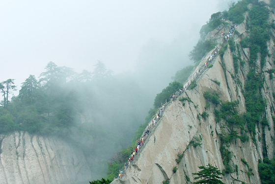 白天攀登華山人太多,對眾多正值青春年華的大學(xué)新生來說,夜爬華山是最合適的玩法。準(zhǔn)備登上華山看日出的同學(xué)建議從晚上8點到9點之間開始爬,路上就可以多休息幾次,在早上5點半之前到東峰看日出。上山真正的挑戰(zhàn)是從千尺峒開始的,從這到百尺峽,這是一段大約80°的坡,而且階梯很窄,但兩邊都有山崖保護(hù),沒什么危險,然后大家就按照路線開始走,自古華山一條道,爬就對了,過了北峰后到達(dá)東峰,看完日出去南峰西峰中峰,然后開始下山。