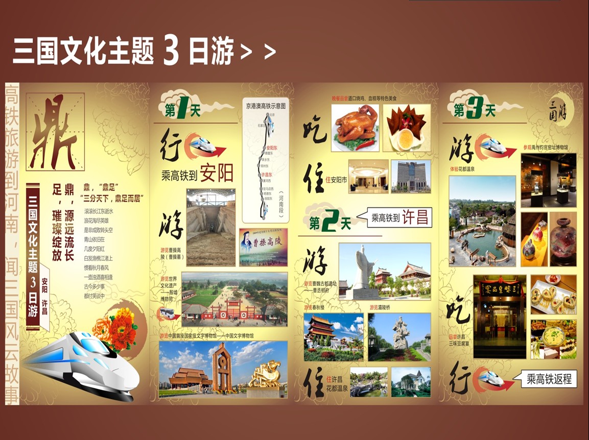 第二天:乘高鐵到許昌。游覽曹魏古都遺址—曹丞相府、春秋樓和灞陵橋景區(qū),住許昌花都溫泉;