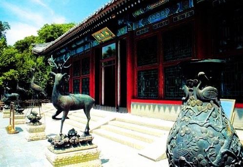 樂壽堂是頤和園居住生活區(qū)中的主建筑,原建于乾隆十五年(公元1750年),咸豐十年(公元1860年)被毀,光緒十三年(公元1887年)建。樂壽堂面臨昆明湖,背倚萬壽山,東達(dá)仁壽殿,西接長廊,是園內(nèi)位置最好的居住和游樂的地方。,堂前有慈禧乘船的碼頭“樂壽堂”黑底金字橫匾為光緒手書。庭院中栽植玉蘭、西府海棠、牡丹等名貴花木,取“玉堂富貴”之意。樂壽堂殿內(nèi)設(shè)寶座、御案、掌扇及玻璃屏風(fēng)。座旁有兩只盛水果聞香味用的青龍花大磁盤,四只燒檀香用的九桃大銅爐。西套間為臥室,東套間為更衣室。室內(nèi)紫檀大衣柜為乾隆時(shí)遺物。樂壽堂庭院內(nèi)陳列著銅鹿、銅鶴和銅花瓶,取意為“六合太平”。院內(nèi)花卉植有玉蘭、海棠、牡丹等,名花滿院,寓“玉堂富貴”之意。這里的玉蘭花很有名,現(xiàn)在邀月門前一株是乾隆從南方移植來的。