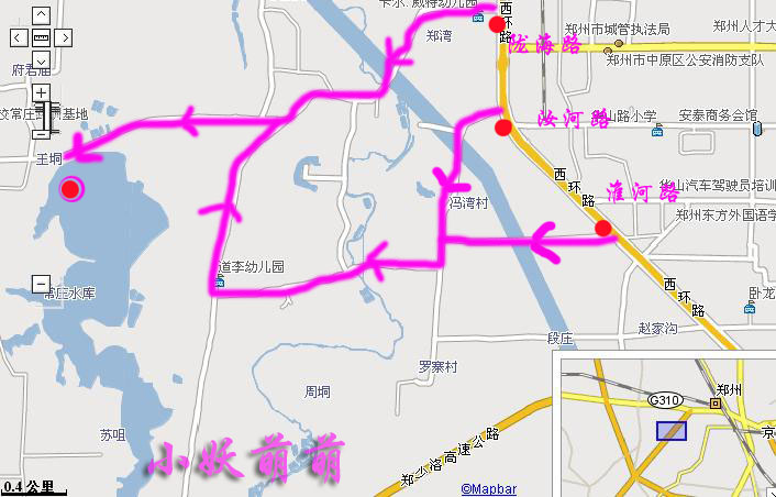 下面就是鄭州常莊水庫的線路圖!只要能坐車到西環(huán)于隴海路、女河路、淮河路的交叉口就可以啦!到西環(huán)路邊你會看到有很多的小摩托三輪車,找個師傅好好商量一下,談?wù)剝r錢不會太貴!當(dāng)然你也可以騎車去!