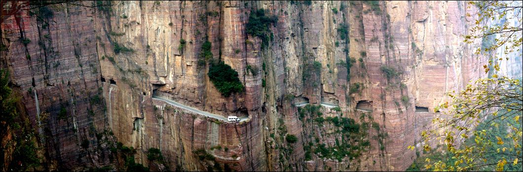 沙窯鄉(xiāng)前往郭亮村的必經(jīng)之路, 橫空懸掛在九十度的陡崖上。郭亮村的標(biāo)致,天下一奇。