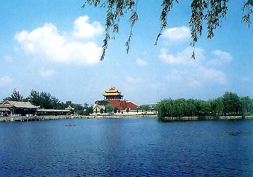 中山路是開封主道,正如我們學校正門口的是武漢主道一樣,一路到龍亭景區(qū),一邊潘湖,一邊楊湖,說是一清一濁,但是看的不太清,確實有很多赤裸只穿內(nèi)褲光著腳丫子的開封男人在楊湖里游泳,氣溫不高,偶PF的很。。