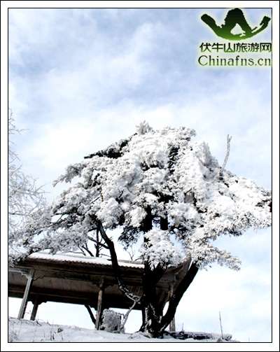 看,就在不遠的地方,樹木圍上了潔白的哈達,調(diào)皮的雪花還要給它們做個造型,于是千樹萬樹梨花開——出現(xiàn)了罕見的雪淞,遠遠的看上去,潔白如織,晶瑩剔透,萬分妖嬈。