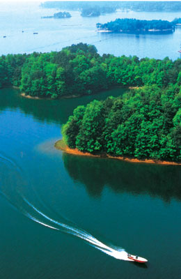 0點(diǎn)多我們到達(dá)南灣湖碼頭,五一長(zhǎng)假剛過,這里的游人還不算多。早就聽說過南灣湖很秀麗,在碼頭上放眼望去,只見眼前碧波浩淼,綠寶石般的島嶼星羅棋布,湖光山色,水天相連,景色很是迷人。在租船的當(dāng)兒,我急急的拿起相機(jī)對(duì)準(zhǔn)這美景不住的按下了快門。tl!JV小劉租好船,我們迫不及待的上到船上,碼頭的管理房漸漸遠(yuǎn)去,那紅紅的瓦,白白的墻,掩仰在綠樹層中,房子的后面是不太高的駱駝峰似的山,與這湖水組成了一幅極美的山水畫,我們便成了畫中人。近看,小船在平靜的湖面上畫出了一道道一圈圈美麗的波紋,在燦爛的陽光下,泛著點(diǎn)點(diǎn)銀光,耀人眼目。再看那水,極清,極純,又帶了些微綠,水里魚兒悠哉游哉的身影都能看清。風(fēng)平浪靜之時(shí),波瀾不驚,倒映著藍(lán)天白云,有船駛過,船首犁開水面,船后則拖起一條前窄后寬的浪跡,不久又歸于平靜。