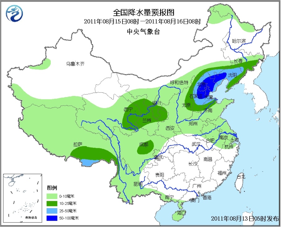 15日08時至16日08時,內(nèi)蒙古中東部偏南地區(qū)、華北大部、東北南部、西北地區(qū)東部、西藏東南部等地的部分地區(qū)有中到大雨;其中,華北東北部、遼寧西部的部分區(qū)有暴雨,局地大暴雨;上述部分地區(qū)并伴有短時雷雨大風(fēng)或冰雹等強(qiáng)對流天氣。