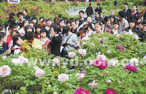 隋唐城遺址千姿牡丹園內(nèi),姚黃、魏紫爭奇斗艷,櫻花、碧桃怒放吐蕊,令各地游客贊不絕口。昨日10時30分,隋唐城遺址千姿牡丹園竣工開園儀式隆重舉行。