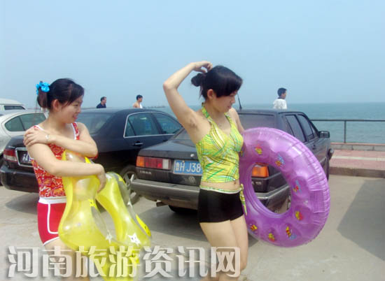 中午漁家里美味的海鮮讓大家大快朵頤。稍事休息,會(huì)員們一個(gè)個(gè)迫不及待的換上下海的行頭,向著太公島第三海水浴場(chǎng)出發(fā)了。