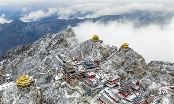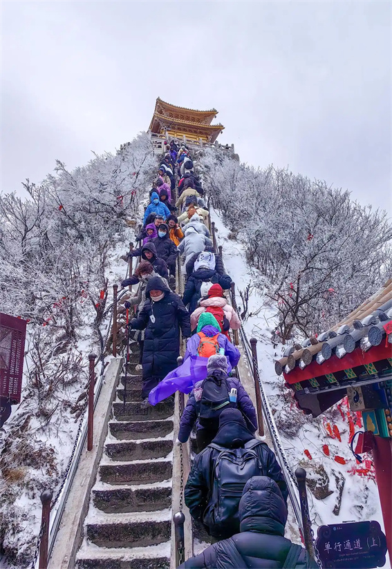 12月20日,洛陽(yáng)市欒川縣雪后的老君山景美如畫,吸引眾多游客前來(lái)拍照打卡。