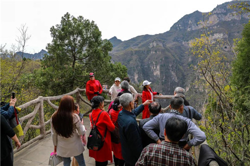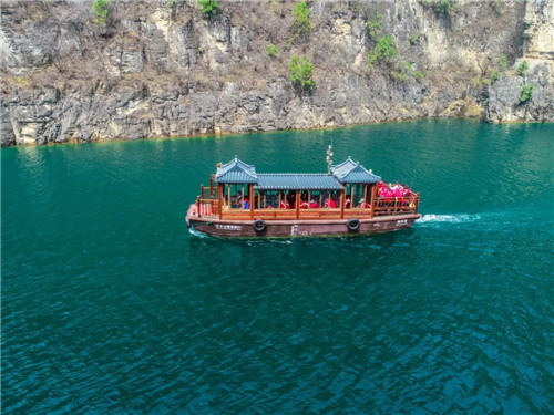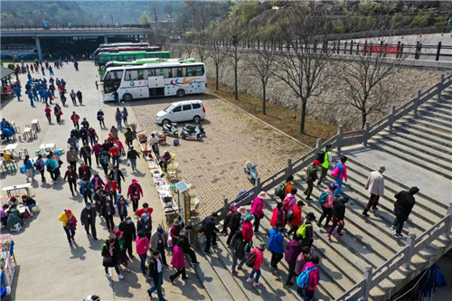4月6日,愛情圣地青龍峽迎來了2021年首趟旅游專列,來自遼寧的近千名游客在青山綠水的峰林峽間,泛舟湖上,盡享“人間天上一湖水,萬千景象在其中”春日繁華。