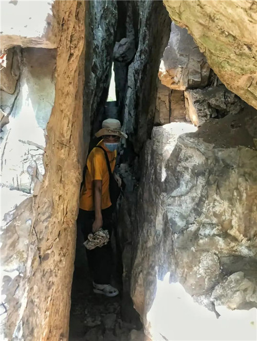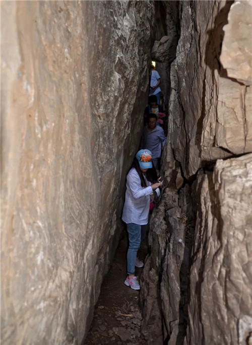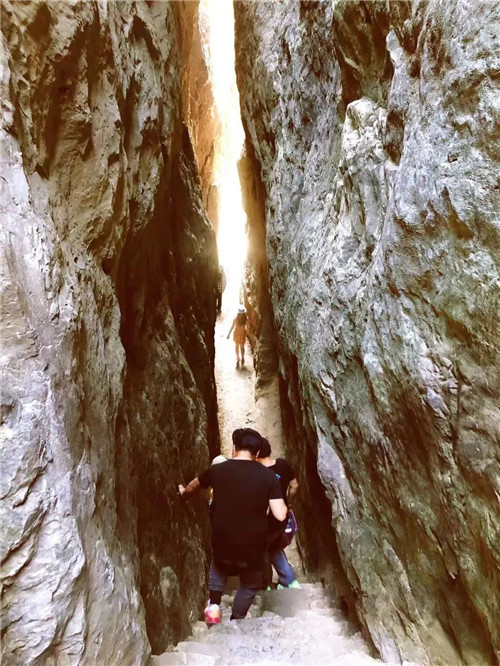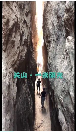 關(guān)山的一線天寬約一米,抬頭只能看見一米的天空,享受一米寬的陽光,所以也叫“一米陽光”。