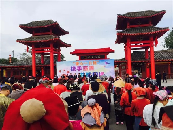 2016年10月11日,開封清明上河園景區(qū)聯(lián)合大商集團開封新瑪特購物廣場有限公司、開封市上河城商業(yè)經(jīng)營管理有限公司、龍亭工商分局、龍亭區(qū)個私協(xié)會等單位在清明上河園景區(qū)迎賓門廣場舉行了“愛心一日捐”慈善活動。眾所周知,“愛心一日捐”活動遵循“扶貧濟困、安老扶幼、賑災(zāi)助醫(yī)、興善助學(xué)”的慈善宗旨,是一項非常有意義的社會公益活動。清明上河園積極響應(yīng)號召,聯(lián)手眾單位舉行的“愛心一日捐”活動。