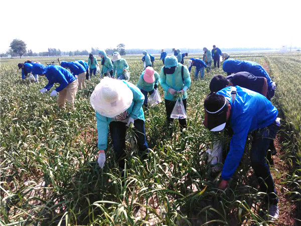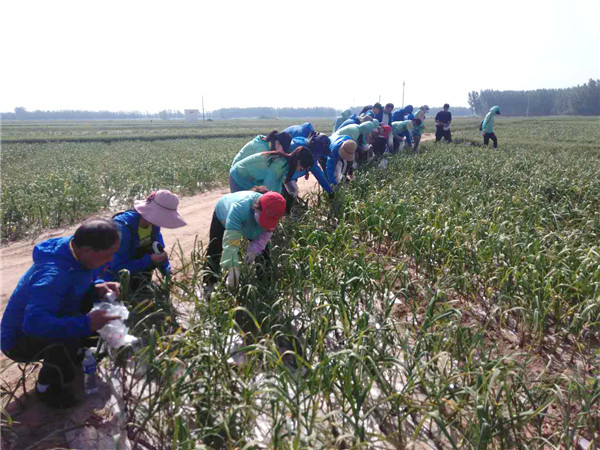 而今天,清明上河園的全體黨員、入黨積極分子及部分團干部們發(fā)揚雷鋒精神,頂著烈日,走向祥符區(qū)西姜寨張寨村田間,幫助蒜農(nóng)抽蒜薹,減輕蒜農(nóng)負擔。避免因蒜薹成熟期不能及時拔除,影響大蒜生長,減少產(chǎn)量,而讓蒜農(nóng)徒增添煩憂。