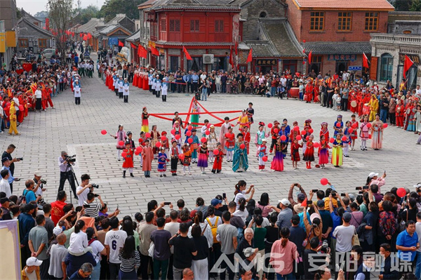上午10時(shí),鼓樓廣場(chǎng)成了熱鬧的“文化舞臺(tái)”。伴隨著陣陣鏗鏘鼓聲,呂村戰(zhàn)鼓表演率先登場(chǎng),身著紅黃相間服飾的鼓手們動(dòng)作剛勁豪邁,激昂的節(jié)奏瞬間點(diǎn)燃現(xiàn)場(chǎng)氣氛,引得圍觀群眾紛紛拍手叫好。隨后,56名身著各民族特色服飾的孩童載歌載舞,用稚嫩的笑臉和歡快的舞姿,演繹出“56個(gè)民族一家親”的溫情畫面,向祖國(guó)母親送上祝福。作為國(guó)家級(jí)非物質(zhì)文化遺產(chǎn)代表性項(xiàng)目,安陽(yáng)縣淮調(diào)也亮相開(kāi)街現(xiàn)場(chǎng)。18位淮調(diào)藝人登臺(tái)獻(xiàn)藝,婉轉(zhuǎn)悠揚(yáng)的唱腔、精湛細(xì)膩的表演,讓觀眾近距離感受這一古老劇種的獨(dú)特魅力。壓軸登場(chǎng)的舞蹈快閃更是活力十足,年輕舞者們用靈動(dòng)的肢體語(yǔ)言,傳遞出百年老街重獲新生的喜悅,不少游客拿出手機(jī)記錄下這熱鬧瞬間。