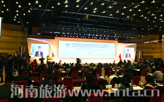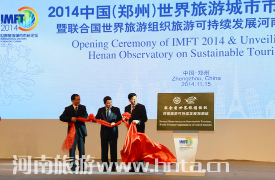 11月15日,為期3天的2014中國(guó)(鄭州)世界旅游城市市長(zhǎng)論壇在鄭州開幕,聯(lián)合國(guó)世界旅游組織旅游可持續(xù)發(fā)展河南觀測(cè)站同時(shí)揭牌。河南省政府省長(zhǎng)謝伏瞻,國(guó)家旅游局局長(zhǎng)李金早、副局長(zhǎng)吳文學(xué),聯(lián)合國(guó)世界旅游組織秘書長(zhǎng)塔勒布•瑞法依、執(zhí)行主任祝善忠,亞太旅游協(xié)會(huì)執(zhí)行理事會(huì)主席斯科特•斯博努,捷克南波希米亞州州長(zhǎng)伊日•齊莫拉,柬埔寨暹粒省省長(zhǎng)欽班頌,河南省委常委、鄭州市委書記吳天君,河南省人大副主任儲(chǔ)亞平,河南省政府副省長(zhǎng)趙建才,河南省政協(xié)副主席鄧永儉,以及來自英國(guó)、加拿大、德國(guó)、意大利、澳大利亞等世界25個(gè)國(guó)家的63個(gè)城市的市長(zhǎng)及代表;來自北京、重慶、西安、杭州、廣州、哈爾濱等國(guó)內(nèi)21個(gè)城市的市長(zhǎng)、國(guó)內(nèi)部分省區(qū)市旅游局長(zhǎng)和境內(nèi)外知名旅行商、航空公司負(fù)責(zé)人、投資商代表和主流媒體記者等參加了開幕式。河南省政府副省長(zhǎng)張廣智主持開幕式。