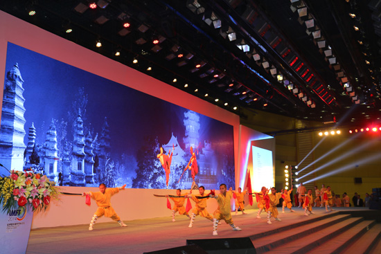 由嵩山少林寺武術(shù)館表演的少林功夫贏得了陣陣掌聲