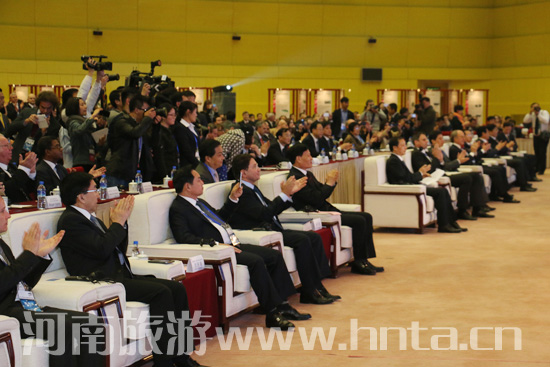 河南省人民政府省長(zhǎng)謝伏瞻、國(guó)家旅游局局長(zhǎng)李金早、聯(lián)合國(guó)世界旅游組織秘書長(zhǎng)塔勒布•瑞法依共同啟動(dòng)開幕裝置,并共同為聯(lián)合國(guó)世界旅游組織旅游可持續(xù)發(fā)展河南觀測(cè)站揭牌。