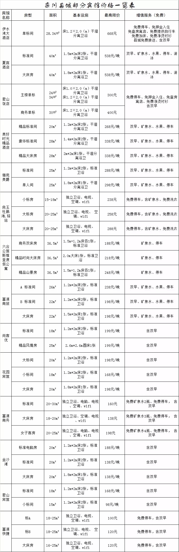 現(xiàn)將,欒川縣城、養(yǎng)子溝景區(qū)、廟子鎮(zhèn)莊子村、重渡溝景區(qū),賓館酒店最高價格公示如下: