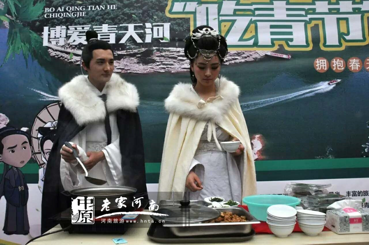 “白娘子、小青”空降青天河,為游客送上清明時令小吃青團。