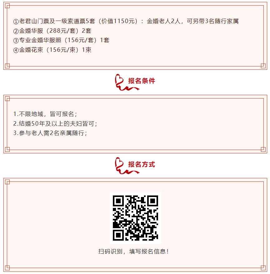 報(bào)名參加典禮的金婚老人,即可獲得價(jià)值2000 元的金婚大禮包: