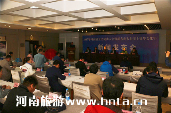 4月6日上午,2017年河南省全民徒步大會暨新鄉(xiāng)南太行崖上徒步文化年新聞發(fā)布會在河南省社體中心四樓會議室舉行。河南省旅游局旅游促進(jìn)處處長湯雁、河南省體育局群體處處長趙峻、河南省體育局社體中心主任陳真、副主任夏麗娟、新鄉(xiāng)市體育局副局長王建華、新鄉(xiāng)市外事僑務(wù)旅游局黨組成員、紀(jì)檢書記呂新安、新鄉(xiāng)南太行旅游有限公司總經(jīng)理王紅昌、副總經(jīng)理郭耀、河南戶外聯(lián)盟賽事中心李敏等,以及國家級、省市級新聞媒體記者參加了本次發(fā)布會。