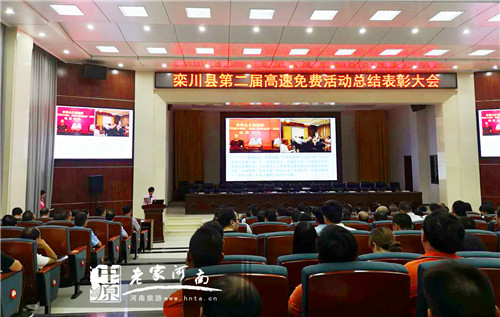 在會(huì)議中,與會(huì)人員觀看了《鑄夢(mèng)2018》欒川縣第二屆高速免費(fèi)活動(dòng)紀(jì)錄片;聽取了由洛陽(yáng)師范學(xué)院程金龍教授發(fā)布的《高速免費(fèi)活動(dòng)效應(yīng)報(bào)告》及《休閑農(nóng)業(yè)、鄉(xiāng)村旅游精準(zhǔn)扶貧報(bào)告》;同時(shí),在會(huì)議上,交警隊(duì)、城市管理局等先進(jìn)單位分別做了先進(jìn)事跡報(bào)告;大會(huì)還對(duì)本次活動(dòng)涌現(xiàn)出來的最美欒川人、先進(jìn)單位、優(yōu)質(zhì)服務(wù)景區(qū)等單位和個(gè)人分別進(jìn)行表彰。
