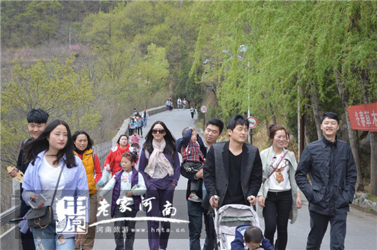 4月2日晚上一陣春雨,給八里溝帶來了更加迷人的景色,翠綠山峰如洗,瀑布流水歡唱。在山青水秀,桃花、山花爛漫的景色中,游客們蹲在小溪旁聽潺潺水聲,看太行獼猴游戲在山岡,如癡如醉。