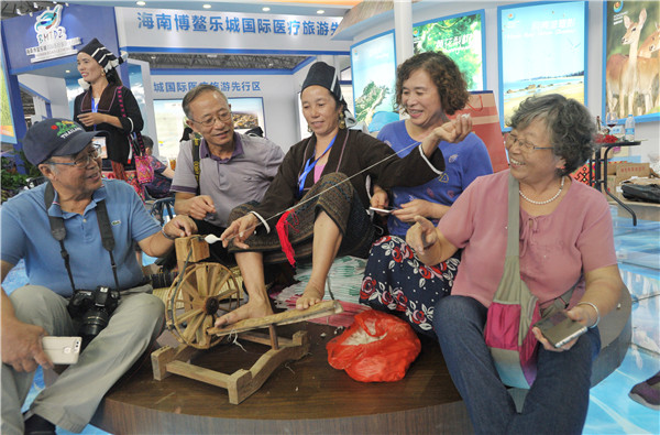 國際旅游島展區(qū)內(nèi),海南省19個市縣、園區(qū)和重點企業(yè)紛紛亮相。海南綜合展區(qū)以“生態(tài)立省,綠色崛起”為主題,分別解讀政府重大政策,整個展區(qū)清新休閑;東方市則把自己發(fā)電的風車也帶到了現(xiàn)場,別具一格;保亭縣則以獨一無二的黎族織錦、苗族發(fā)繡布置展區(qū)。黎族姑娘耐心的解釋道,“黎族的織錦是國家級的非物質(zhì)文化遺產(chǎn),對于它的開發(fā)與保護我們都很用心。我們此次來海博會參展主要是向更多的人宣傳織錦,把黎族的手藝傳揚出去。”