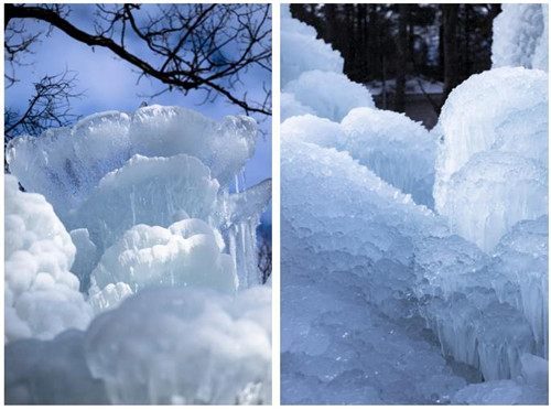 在森林氧吧游覽區(qū),一眼就看到了氣勢(shì)恢宏的冰掛,層層復(fù)垂,晶瑩剔透。