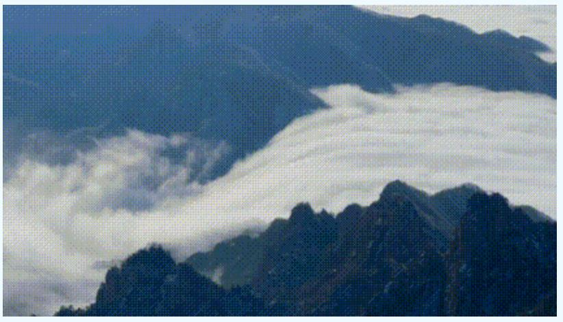 高山之巔俯首云層時,看到的是漫無邊際的云,如臨于大海之濱,波起峰涌。