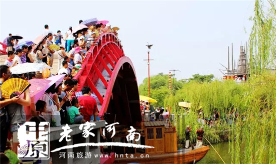 開封清明上河園景區(qū)是以《清明上河圖》為藍(lán)本建造的,不僅以恢宏的氣勢再現(xiàn)了《清明上河圖》,而且用巧妙的創(chuàng)意把宋代歷史活化,步入清園,仿佛穿越時空隧道走進(jìn)了一幅活動的歷史畫卷。