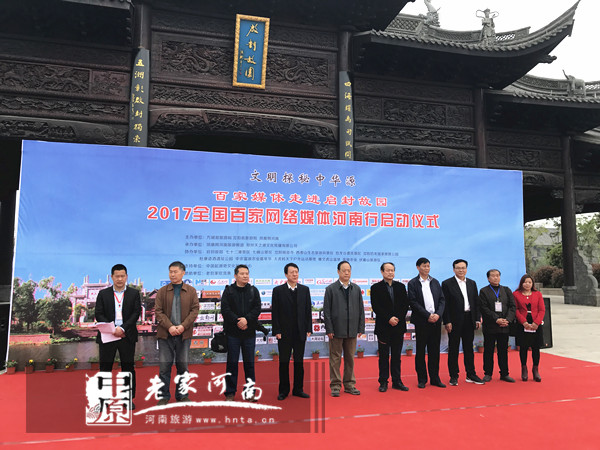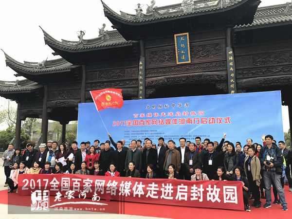 春風吹綠千枝柳,時雨催紅萬樹花。在這春暖花開的美好季節(jié),全國百家網(wǎng)絡媒體相聚在啟封故園,舉辦“文明探秘中華源”2017全國百家網(wǎng)絡媒體河南行啟動儀式。河南省委宣傳部原副部長、河南省新聞攝影學會主席常法武,河南省旅游局原副巡視員潘進軍,河南省攝影家協(xié)會副主席楊峰,體育旅游研究中心教授武東曉,河南財經(jīng)政法大學旅游發(fā)展與規(guī)劃研究所教授茍自鈞,開封旅游委副主任張克彬,祥符區(qū)文廣新局局長張軍,朱仙鎮(zhèn)黨工委書記郭峰,朱仙鎮(zhèn)鎮(zhèn)長王國杰,啟封故園總經(jīng)理張占彪,鳳凰網(wǎng)河南旅游頻道總監(jiān)郭穎穎等領導和嘉賓出席了啟動儀式;本次活動將帶領全國各地的媒體界朋友們,在河南的文化與美景中,探尋到中華文明之源的密碼。